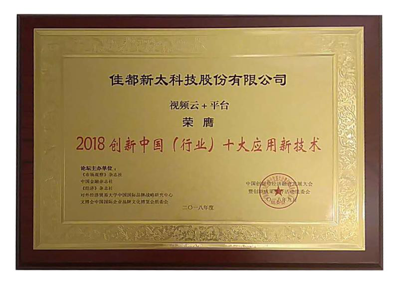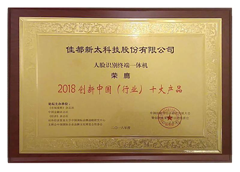 9月28日至29日,2018中國創新與經濟融合發展大會暨(第二屆)創新成果推介活動在北京舉行。佳都科技斬獲雙料獎項, 視頻云+大數據應用平臺獲2018創新中國(行業)十大應用新技術,臉識別終端一體機獲2018創新中國(行業)十大產品。
