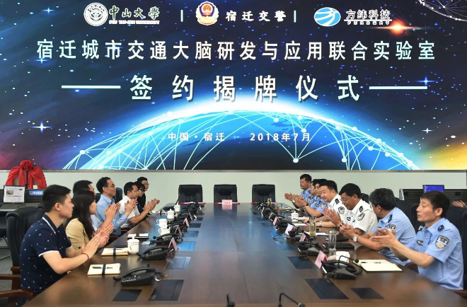 7月17日上午,佳都科技控股公司方緯科技與宿遷交警、中山大學廣東省智能交通系統重點實驗室共同簽署合作協議,共建宿遷城市交通大腦研發與應用聯合實驗室。簽約暨聯合實驗室揭牌儀式在宿遷市公安局指揮中心隆重舉行,標志著佳都科技與方緯科技研發的城市交通大腦正式走進江淮生態經濟區。