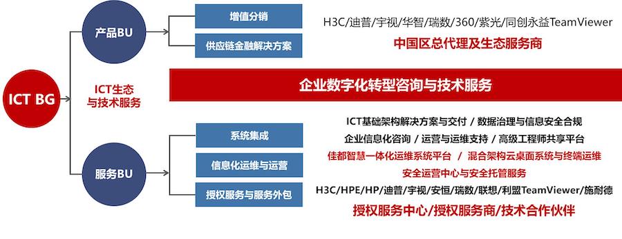 佳都科技以ICT技術為依托,創(chuàng)新整合上下游資源,以ICT產(chǎn)品及技術服務為載體以行業(yè)應用需求為導向,建立ICT供應鏈與技術生態(tài)。為政府、金融、電信、制造、教育、IT等企業(yè)級客戶進行數(shù)字化重塑,圍繞解決方案和項目生命周期,為合作伙伴與客戶提供從規(guī)劃咨詢、產(chǎn)品供應鏈服務、行業(yè)解決方案、運維服務、運營支持等項目管理與技術服務,以創(chuàng)新的解決方案和服務體系為合作伙伴和客戶提供一站式ICT服務。