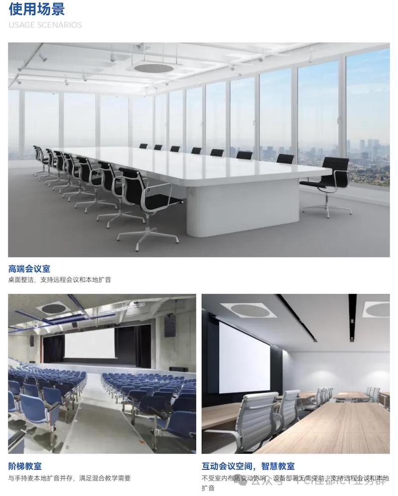 MC10是思必馳推出的一款高端吸頂會議麥克風(fēng),其集成了多達128單元的全向麥克風(fēng)陣列,提供了8個獨立可配拾音區(qū),可實現(xiàn)精細化拾音配置。它采用了Dante數(shù)字音頻技術(shù),確保音頻傳輸穩(wěn)定和廣泛兼容。MC10內(nèi)置AI算法,提供高清降噪去混響、反饋抑制、自動增益和語音轉(zhuǎn)寫等功能,有效提升了會議效率。MC10適用各類吊頂安裝方式,PoE供電,可滿足各類會議空間的吊裝需求。